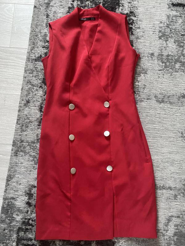 Якісна тканина і пошиття, колір менш яскравий аніж на фото , але червоний (не Бордо ) . Одягала три рази. Довжина 86 см, ПОГ 41, ПОТ 35 ПОТ 45. Одягнуто на ріст 170 см. Ог 80, от 65, об 90