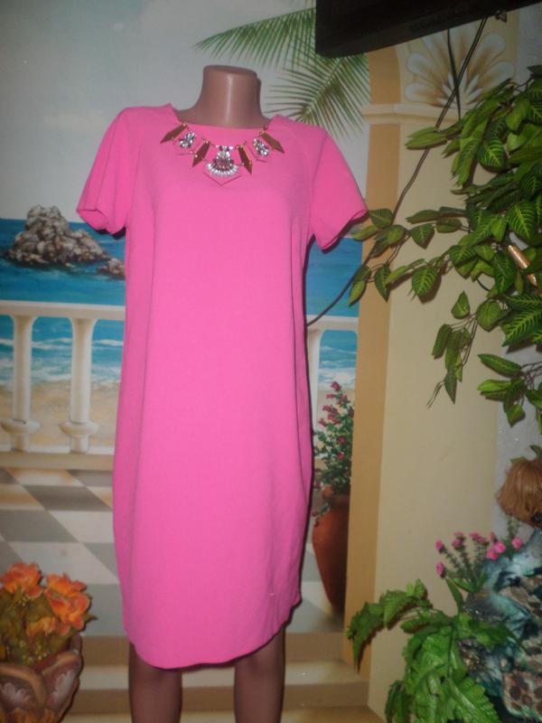 Роскошное фирмовое платье красивого розового цвета. Длина платья - 94 см., ОГ - 100 см.. донизу свободно, поетому ОТ - 100 см. Об - 110 см., на пару см. потянется еще.