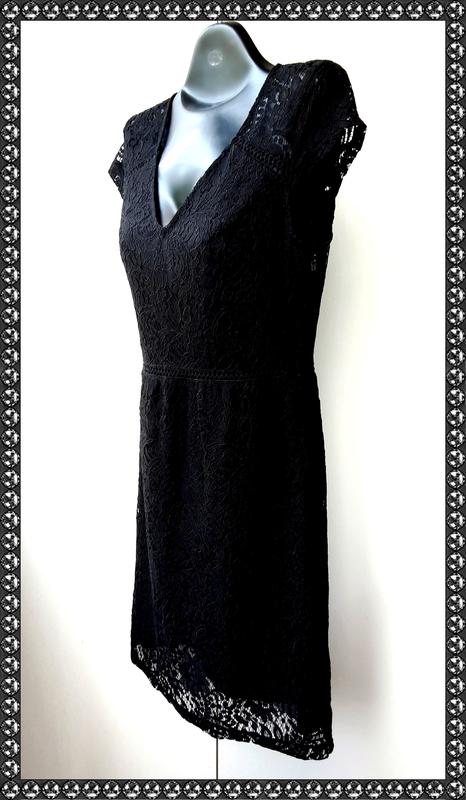 Черное кружевное платье Promod/France . Модель платье-футляр мини с открытой спиной. Застегивается с боку на молнию и пуговку на спинке. Платье черного цвета всегда считалось классикой, черный гипюр не является исключением. Черный цвет идеален для выбора платья в качестве делового, для похода в театр или на статусную вечеринку, для повседневной носки для молодых девушек и зрелых женщин. Размер : 38 ,замеры на последнем фото.