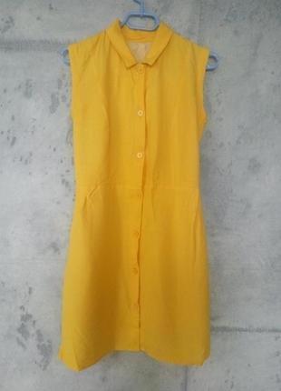 Шито на заказ, натуральный материал, на подкладке, удобный повседневный фасон, полностью застегивается на пуговицы Длина 87 Подойдет на максимум 90/70/93 Реальный цвет на фото 1, 2, насыщенный жёлтый, не лимон Состав: Лен, вискоза