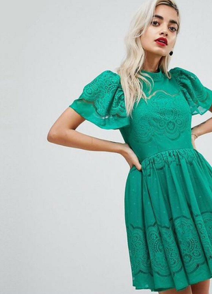 Дуже красиве мереживне плаття насичено зеленого кольору , фото не передає яскравості , нове , з пишними рукавами і присобранной талією , на сайті дорожче . Точно нікого не залишить байдужим