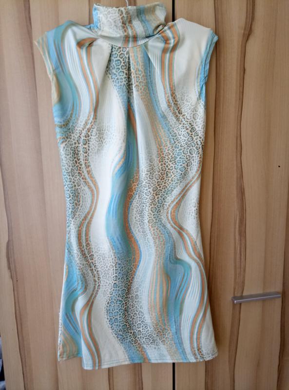 еластичне сукні-міні, гарно підкреслює фігуру. Іде на розмір с-м. Довжина 80 см, ширина в грудях 42 див. на етикетці вказано склад: 95% віскоза, 5% еластан
