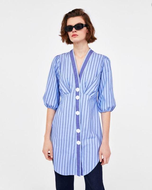 Сукня-сорочка ZARA. Стан ідеальний, як новенька. Якщо зріст до 168, то можна носити як сукню. Тканина натуральна 100% котон, не тягнеться. Розмір S Заміри: груди ПО 45см талія ПО 37см бедра ПО 47см довжина повна 93см
