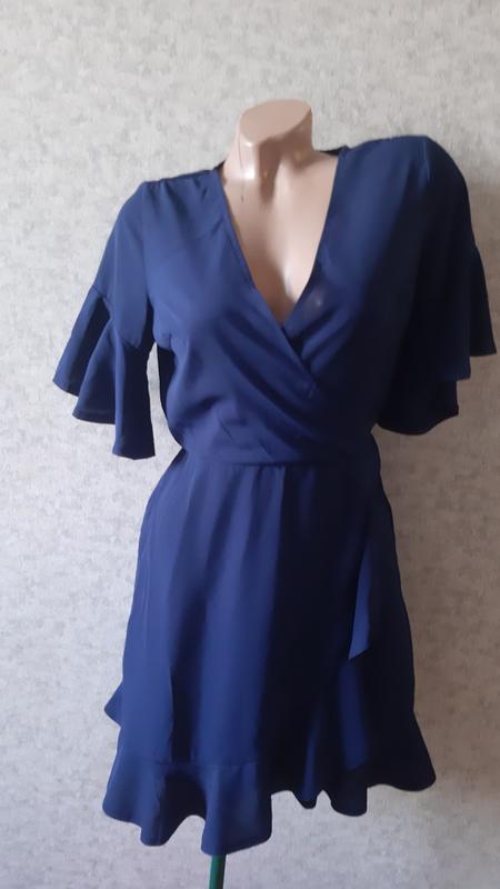 Платье с креп шифона, с имитацией запаха, талия на резинке, сзади потайная змейка, не просвечиваеться , в идеальном состоянии!!! За дефекты не спрашивайте- ИХ НЕТ! длина -90 Пог-45, но на запах и обьм двигается Пот -31+тянется