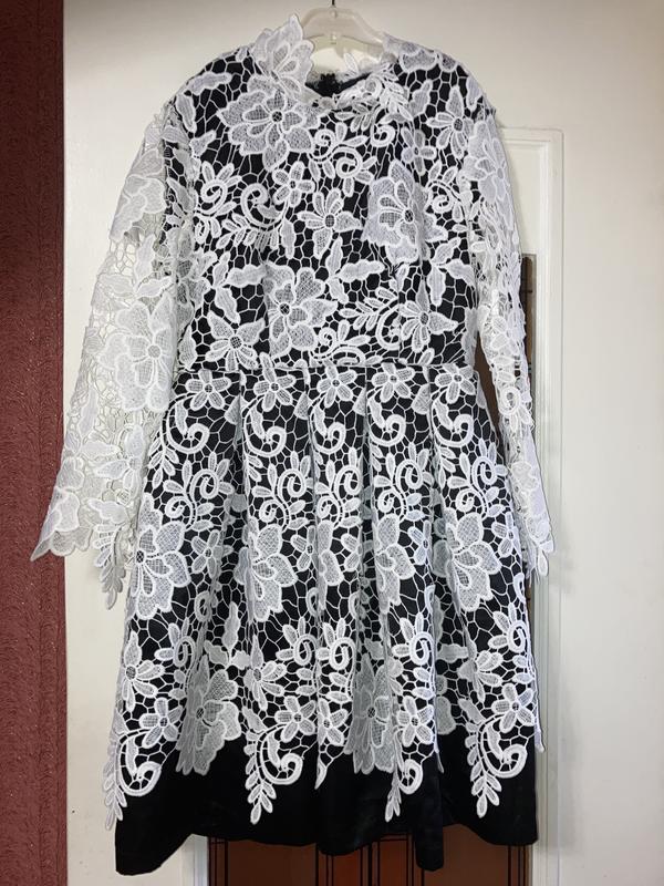 Сзади на молнии, , ажурный рукав, длина 84, до талии от плеча 35, пог 40, пот 33, плечи 36, рукав49