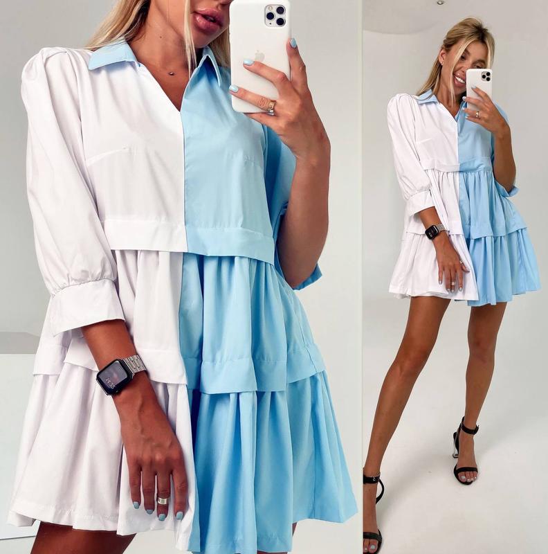 Платье Мод. 1024ОМ Ткань: Софт Отличное качество! Размеры: Универсал Расцветки: Голубой+Белый, Беж+Белый