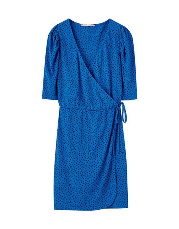 Стильное женское платье на запах pull & bear, мини платье, синее платье в горох, плать...
