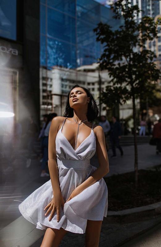 Приталенное платье мини с открытой спинкой в белом цвете Размер: S,M Ткань: люрекс Артикул: 12549-11