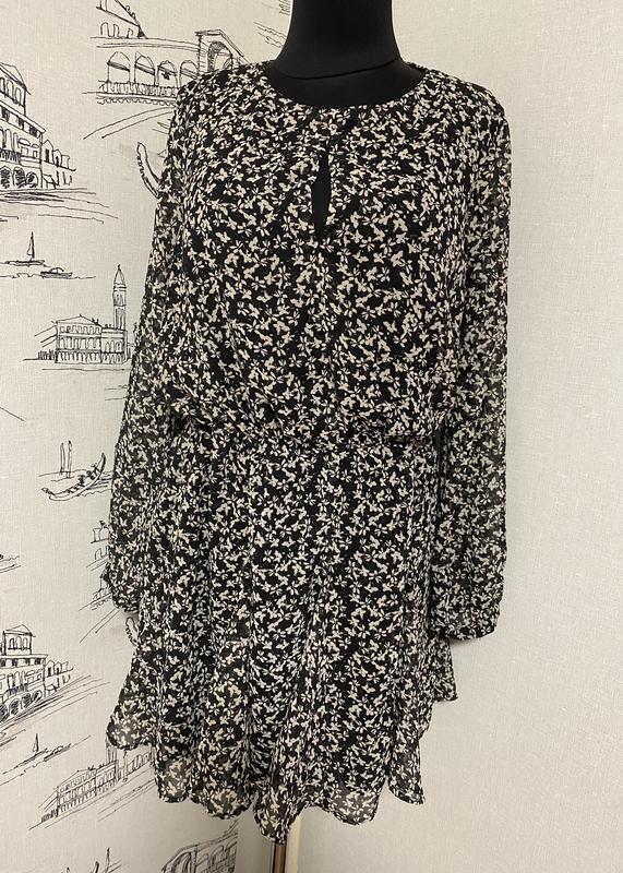Сукня легка повітряна з трендовою спідницею з принтом довгий рукав брендова шифонова