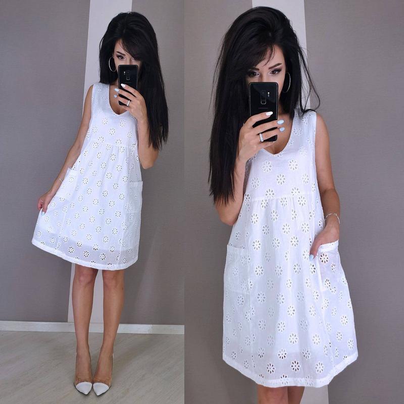 Сукня "Лаванда" р. 42-44 и 44-46 Ткань: батист+подклад-компонент хб. Цвет: мягкая ята и белый -длина 90 см -Детские карманы