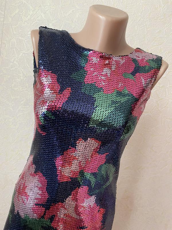 Платье полностью в пайетку. Все пайетки на месте. Внутри платье на подкладке. По фигуре приталенный силуэт. Размер С. Состояние идеальное. Одевалось пару раз на мероприятие.