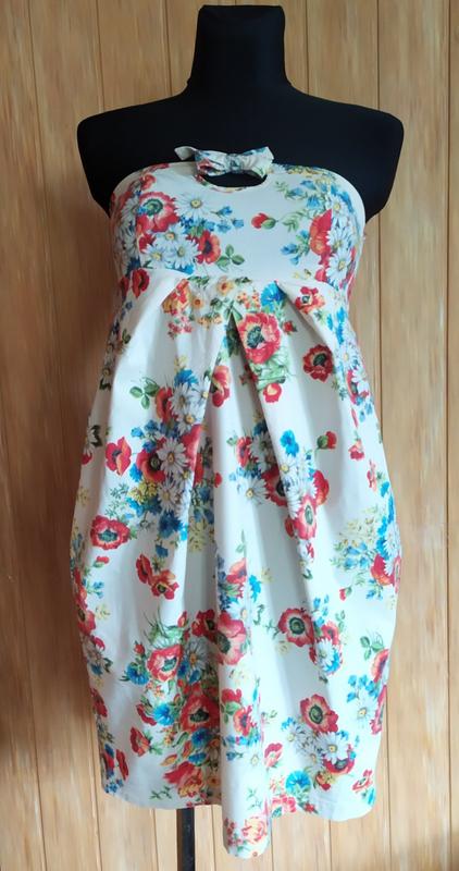 Тонкая ткань, похоже, хлопок. Бирок нет. Спинка прострочена резинками. ПОГ от 35 до 40см, в талии и бедрах свободно, длина переда 70см. В боковых швах карманы. Недостатков нет.