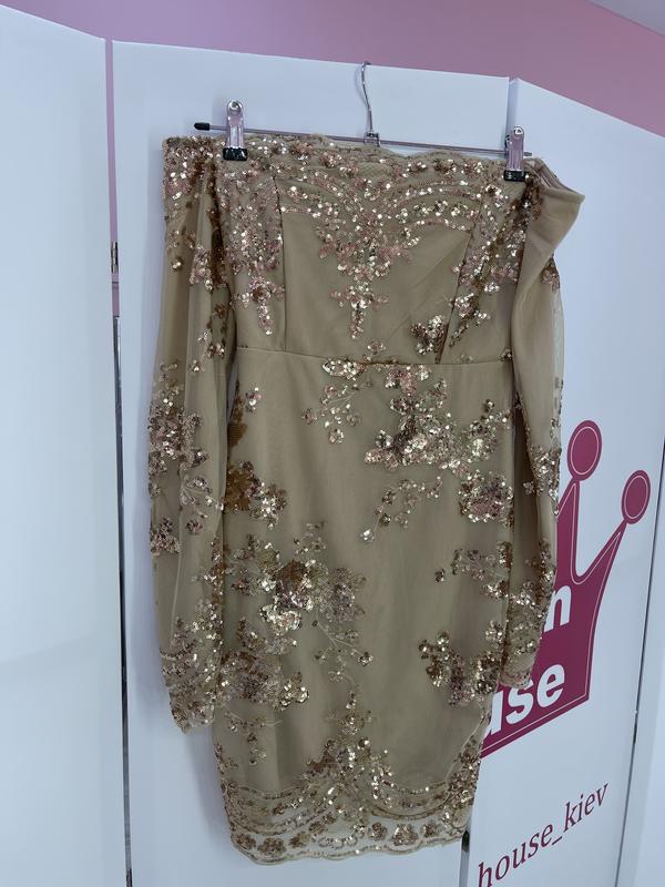 Нарядное платье с открытыми плечами, идеально садиться по фигурке.