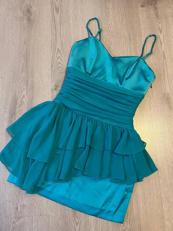 очень красивое вечернее платье корсетом, с регулируемыми бретелями, застежка молния сбоку, размер XS-S.Есть очень маленькое незаметное пятно