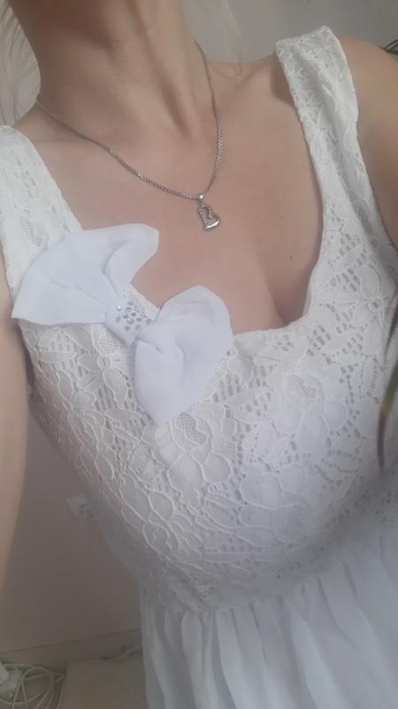 нова сукня з біркою, верх гіпюр на підкладці, низ шифон на підкладці, бант з камінчиками пришитий.Довжина 83 см