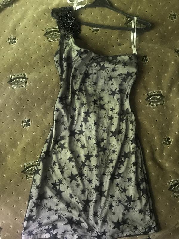 Платье с звёздами на одно плечо.