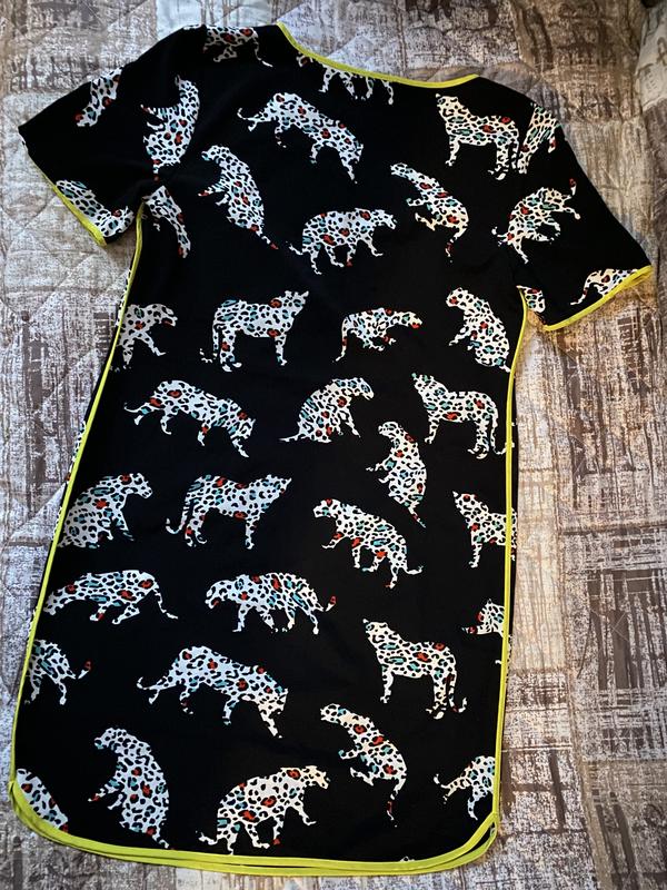 Очень классное платье, прямого силуэта, не тянется М-Л. С кантом, полиэстер
