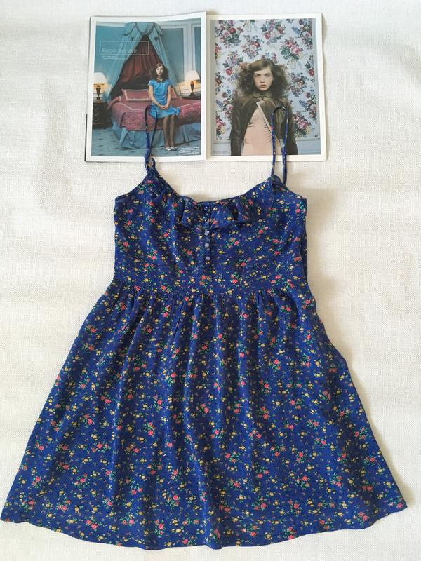 Лёккое платье из вискозы на тонких бретелях,актуальный цветочный принт;подойдёт на размер XS-S;пог-38,5см,пот-35см,длина изделия(перёд)-66,7см(без учёта бретелей),ДИ(спинка)-55,3см!бретели регулируются