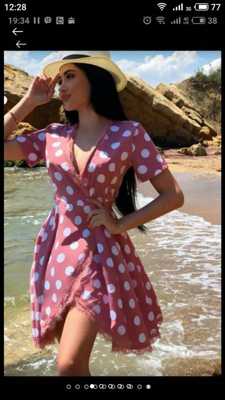 Розовое платье в горошек