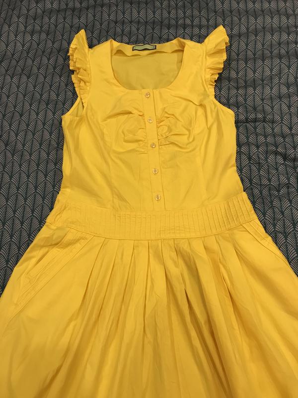 Хлопковое платье. В носке практически не было (покупалось на торжество). Пятен нет. Если есть отпариватель - не проблема (у меня нет, поэтому утюгом после стирки особо не утюжила, чтобы не страдала ткань). На L и M . Пог -43, бёдра - свободно за счёт сборок юбки. Сбоку змейка. Следов носки нет. Спереди ниже пояса 2 кармашка. Метериал коттон + стрейч. Длина от плеч - 99см. Отправка любой почтой после оплаты.