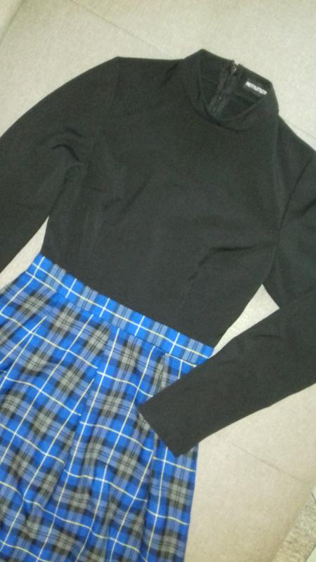 Интересное платье на каждый день . Размар 36 Производитель Украина . Замеры - длина 87см ПОТ- 32см ПОГ- 44см Спинка на молнии, высокая горловина, рукав длинный .Цвет насыщено чёрный (на фото засвечивается камера). Низ платья, ткань как рубашка .