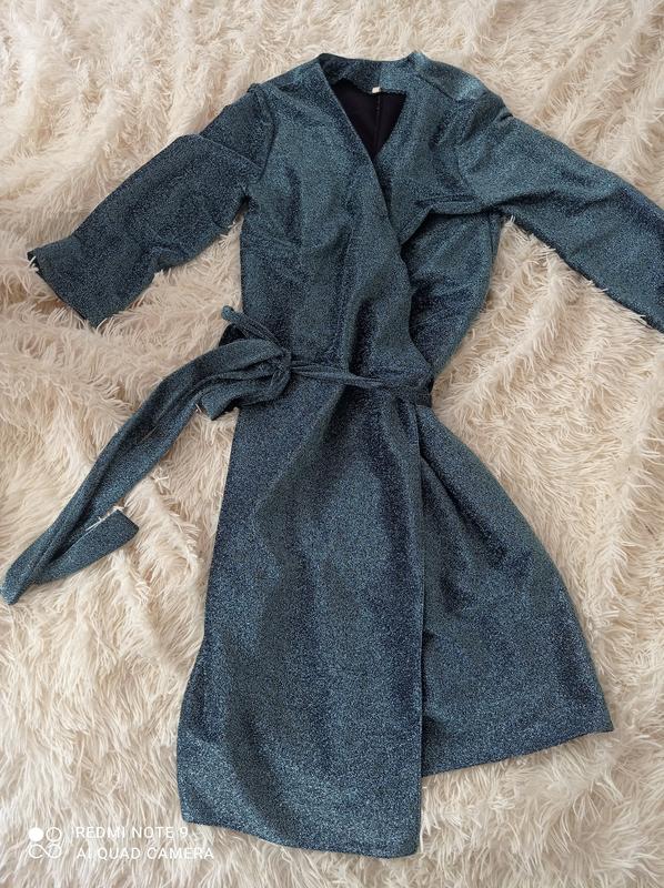 Дуже гарна,святкова сукня з блисківками, ткань не осипається це блискуча нитка, гарно преться,зав'язується пояском на талії,підкреслює фігуру і декольте.