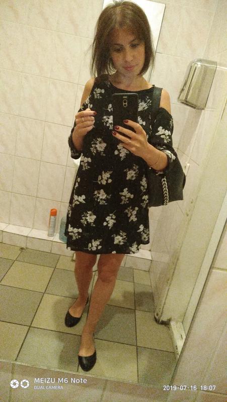 Чорне плаття в квітковий принт, на підкладці Фасон трапеція, з вирізами на рукавах