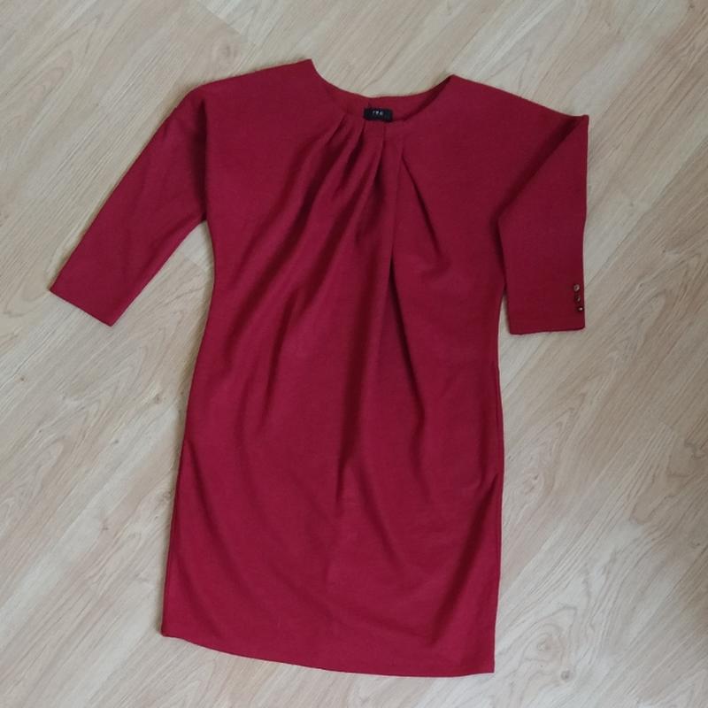 Теплое,необычное,яркого терракотового цвета.По горловине--красивые складки,стройнит.За счёт заложенных по горловине складок имеет модный О-силуэт.В боковых швах-карманы.Удобное,комфортное. Длина по спинке-87 ПОТ-45 ПОБ-53 Ткань немного тянется.