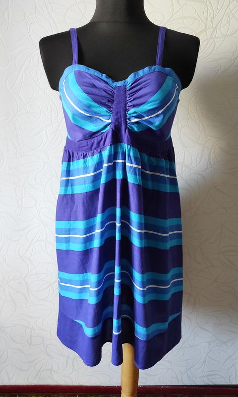 Сарафан из хлопка от marks and spenser в сине-бирюзовую полоску, размер 16