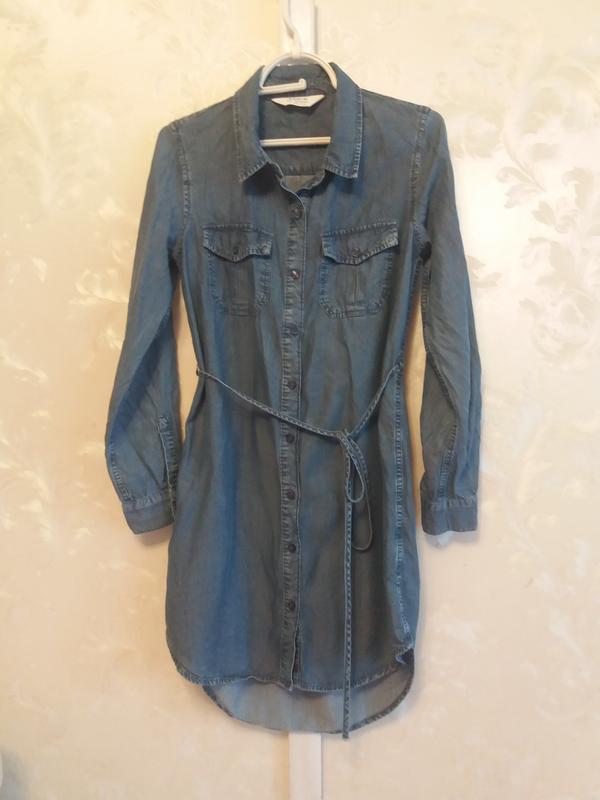 Джинсове плаття-сорочки з поясом, можна носити як з довгим рукавом, так і з відвернутим , є гудзички. довжина спереду 86 см, ззаду 94 см, пог 45 см, пот 45 см, поб 49 см, ширина плеч 38 см, довжина рукава 58 см. (арт. П1)