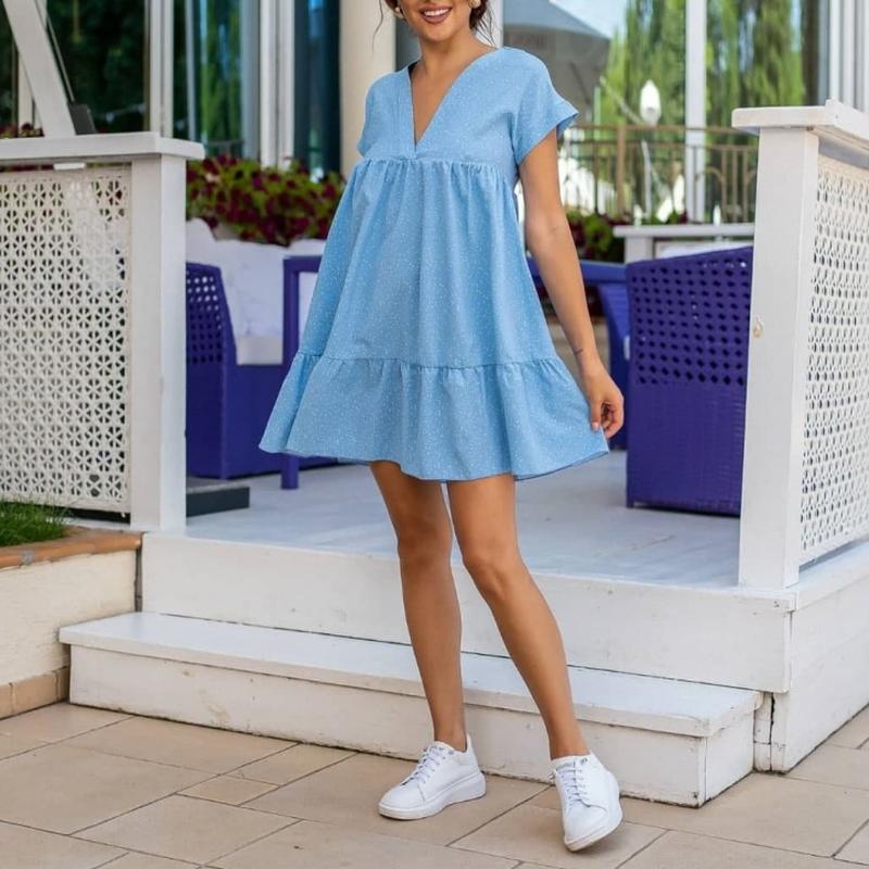 #Платье Артикул: 560-1272 Размеры: 42, 44, 46, 48 Материал: евро-софт Цвет : сиреневый. розовый. красный. голубой. Фото Реал