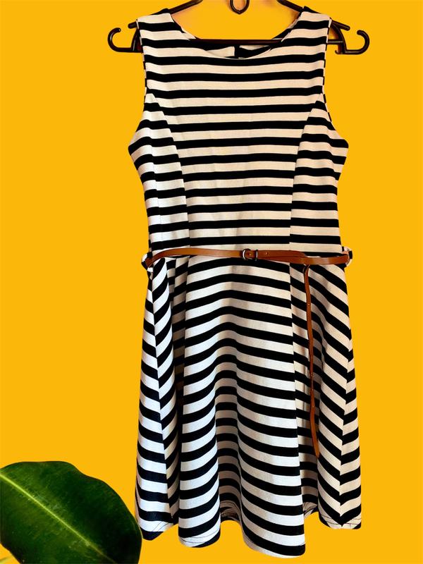 Женское платье в чёрную полоску без рукавов. Юбка - солнышко ,на спинке молния ,приталенный крой . - Размер S-M Замеры уточняйте в лс - цвет: чёрный/белый - состав: 100% акрил Отправляю в день оплаты
