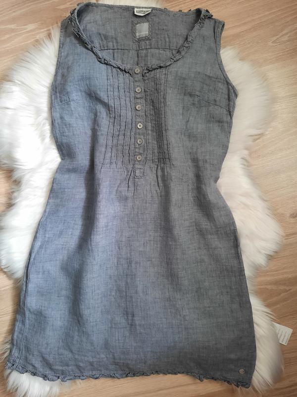Льняное серо-голубое платье, было ушито до 36 размера, ПОГ-46, ПОТ-42, ПОБ-50(51), длина-88.
