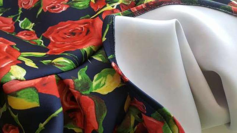 Шикарное платье из в меру тонкого неопрена, очень хорошо выделяет талию за счет юбки, удобно садиться по фигуре реальный цвет на тех фото где цвета насыщенные было одето один раз на торжество. Состояние идеальное! покупалось за 800 ПОТ 37 см Длина со спины 83 см Плечи 34 см Под руками 42 см Размер S/М к нему есть босоножки Steve Madden 36 размера, очень похожи по расцветке)