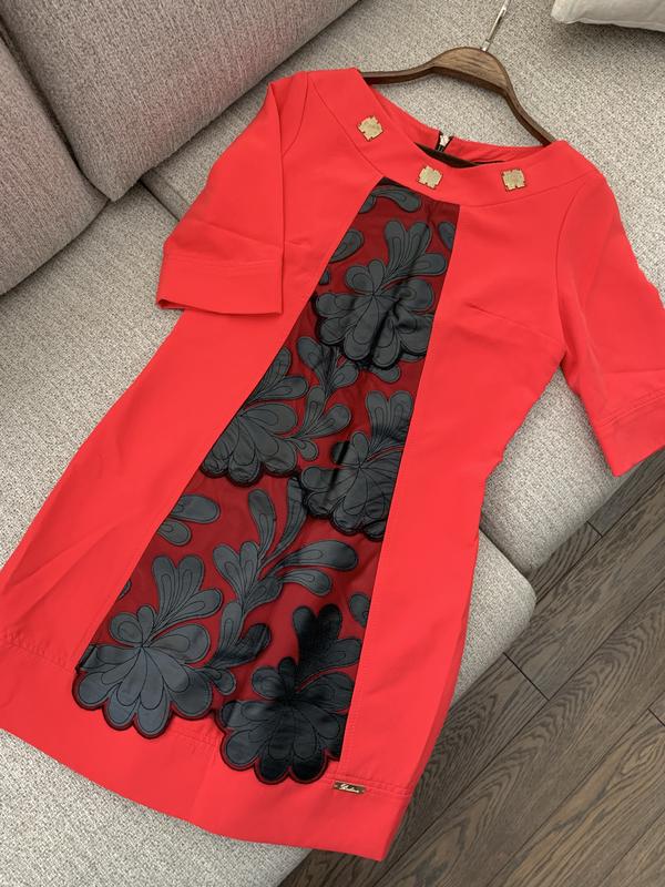 Нарядное платье впереди вставки из натуральной кожи . Длина 83, пог 44, поб 48, плечи 38, рукав 33. Есть пятнышко