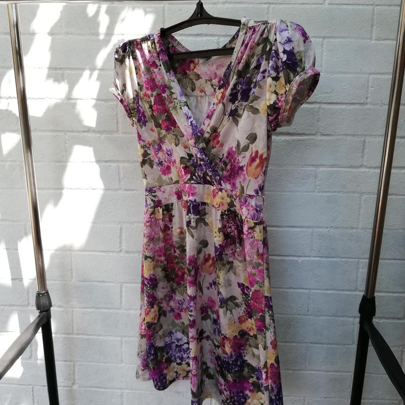 Платье в цветочный принт. Легкое, приятное а телу. Размер S. /M, подмышки 38,пот33, по 52, длина86 Фирма E _vie,