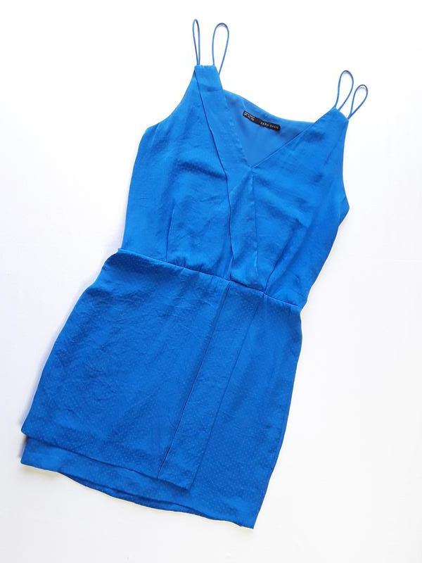 Очень крутое платье Zara Необычный эффектный крой Запах на юбке спереди и сзади Размер S Пог 44 см Пот 38 см,резинка Поб 49 см Длина 89 см Верх дублирован подкладкой Баночка с составом срезана, на ощупь очень похожа на шелк