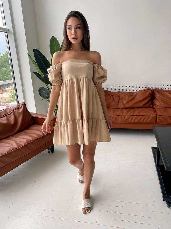 Сукня, тканина-льон, жовте-хлопок, розмір S-M