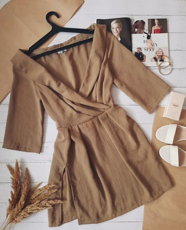 Милое платье актуального цвета с интересным верхом и небольшим разрезом. Платье абсолютно новое, но бирочка срезана. Размер 14. Полуобхват груди - 44 см. Полуобхват талии - 35 см. Полуобхват бедер - 51 см. Длина - 76 см.