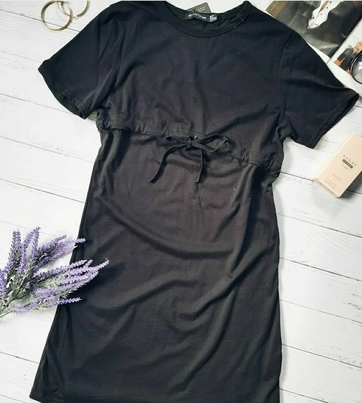 Чёрная платье-футболка. Размер 10. Полуобхват груди - 44 см. Полуобхват талии - 42 см. Полуобхват бедер - 46 см. Длина - 85 см.