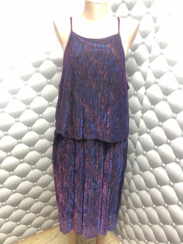 Чудове плаття як для свята так і для повсякденного носіння. Добре тягнеться. У житті дуже красиво переливається. На бірці розмір не вказаний, але думаю що на М, Л, ХЛ. В наявності 2 шт. Дефектів немає. В житті набагато гарніше так як на манекен воно велике