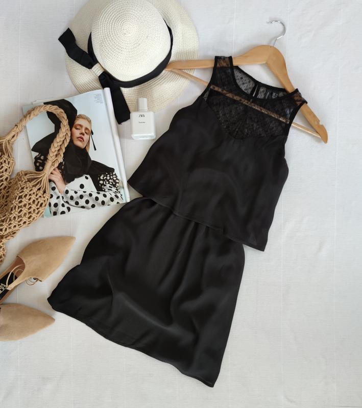 чорне плаття від Mango з мереживом, талія на резинці, тканина віскоза, розмір XS, ПО грудей 44 см, довжина 85 см
