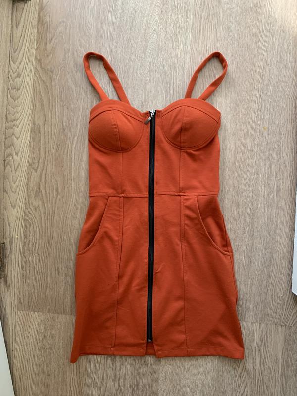 Стильное платье, красивого морковного цвета Размер S Очень хорошее состояние