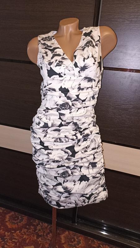 Красивая и стильная вещичка. Спереди много складочек, отлично скрывает небольшой животик. На спинке молния. Есть подкладка, но она только спереди. Не тянется. ОГ 90 см ОТ 76 см ОБ 94 см Длина 94 см