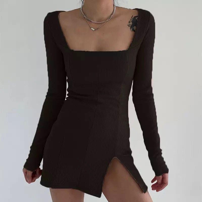 Сукня рубчик квадратний виріз декольте вінтаж коротке чорне розріз виріз спереду збоку