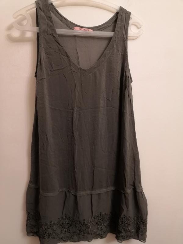 Довжина 76, пог 44, пот 46, стегна 51, низ 55, плечі 33, плече 4 шовк 75%, бавовна, 18%, Еластан 3%, віскоза 3%