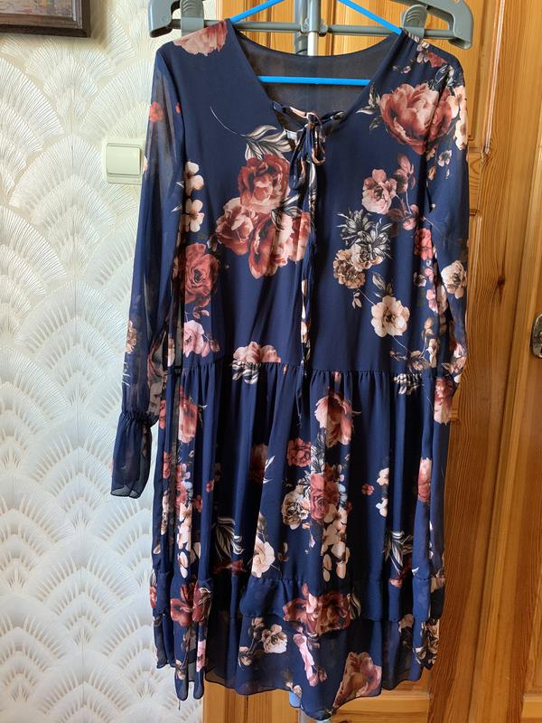 Шифоновое платье с небольшим воланом снизу Размер подойдет на xxs,xs,s Длина 90 см Снизу подкладка(не просвечивается) Красивый переплет в области декольте Есть небольшой нюанс на ткани сзади