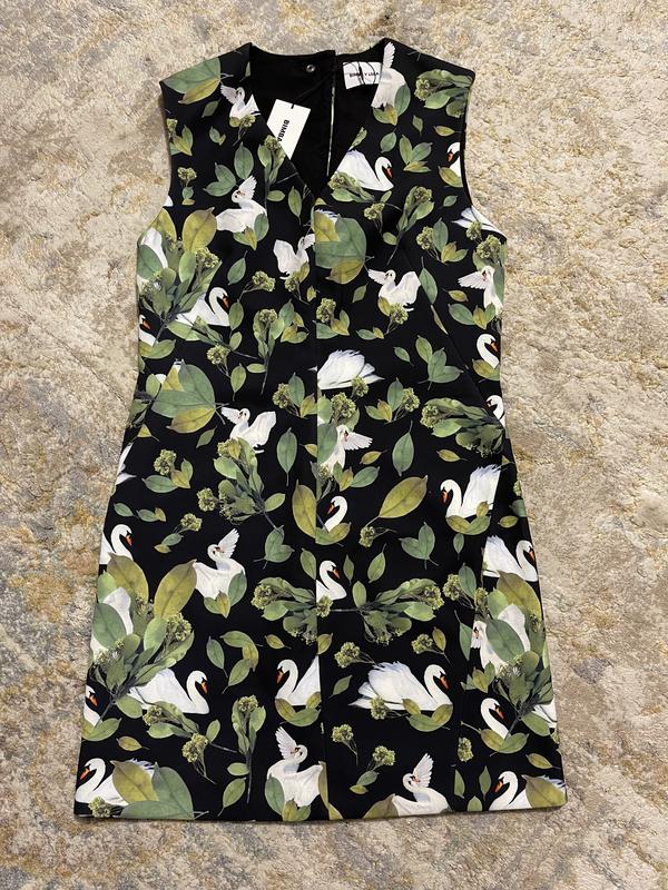 Трендовое платье испанского бренда Bimba y Lola , размер S , новое с биркой ! Длина платья -87 см ПО груди 45см По сетке бренда идёт на параметры Грудь :88см Талия :70см Бёдра :96 Платье тянется , возможно и на небольшой М . Сзади застегивается на круглую матовую кнопку. Очень эффектное и стильное , платье плотное , состав 95% полиэстер , 5% эластан .