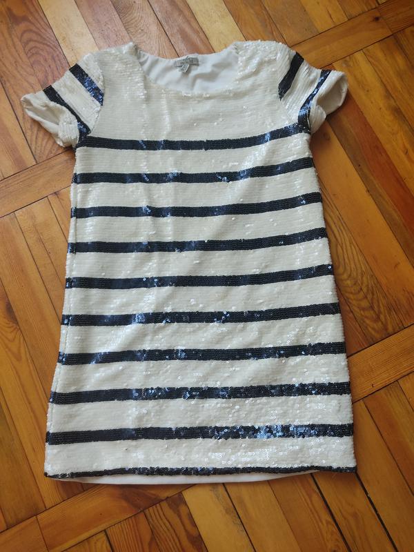 Красивое платье полностью расшитое паетками. Смотрится очень дорого и стильно. прямого кроя. Размер XS . Одевалось пару раз. Состояние отличное, новой вещи