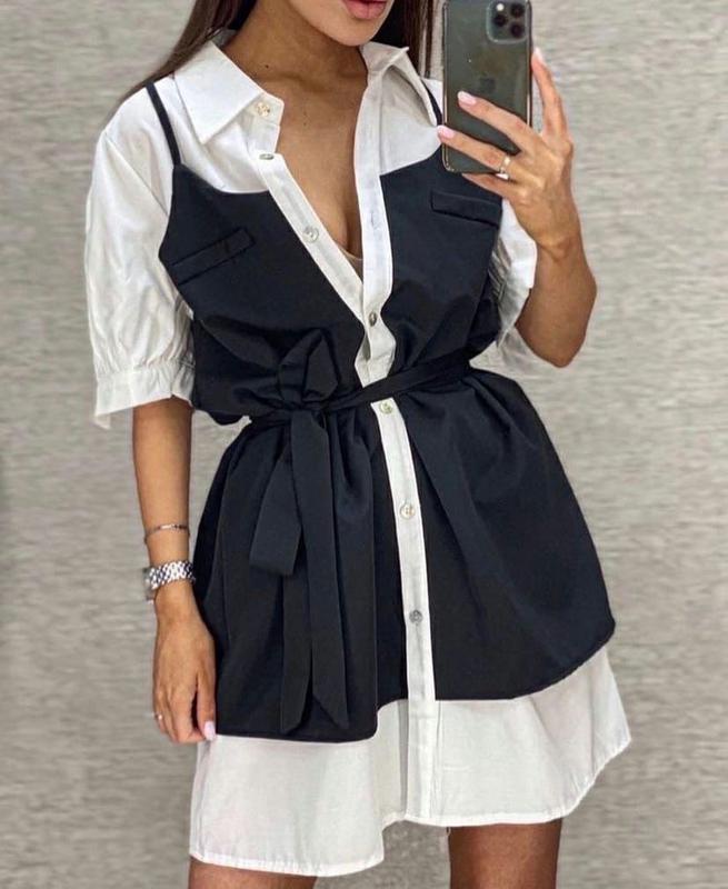 Неймовірна річ на всі випадки ,як святковий наряд так і на кожен день.Два в одному .Сорочка котон +вшитий піджак-костюмка.Дуже стильна річ під високі чоботи-то любов
